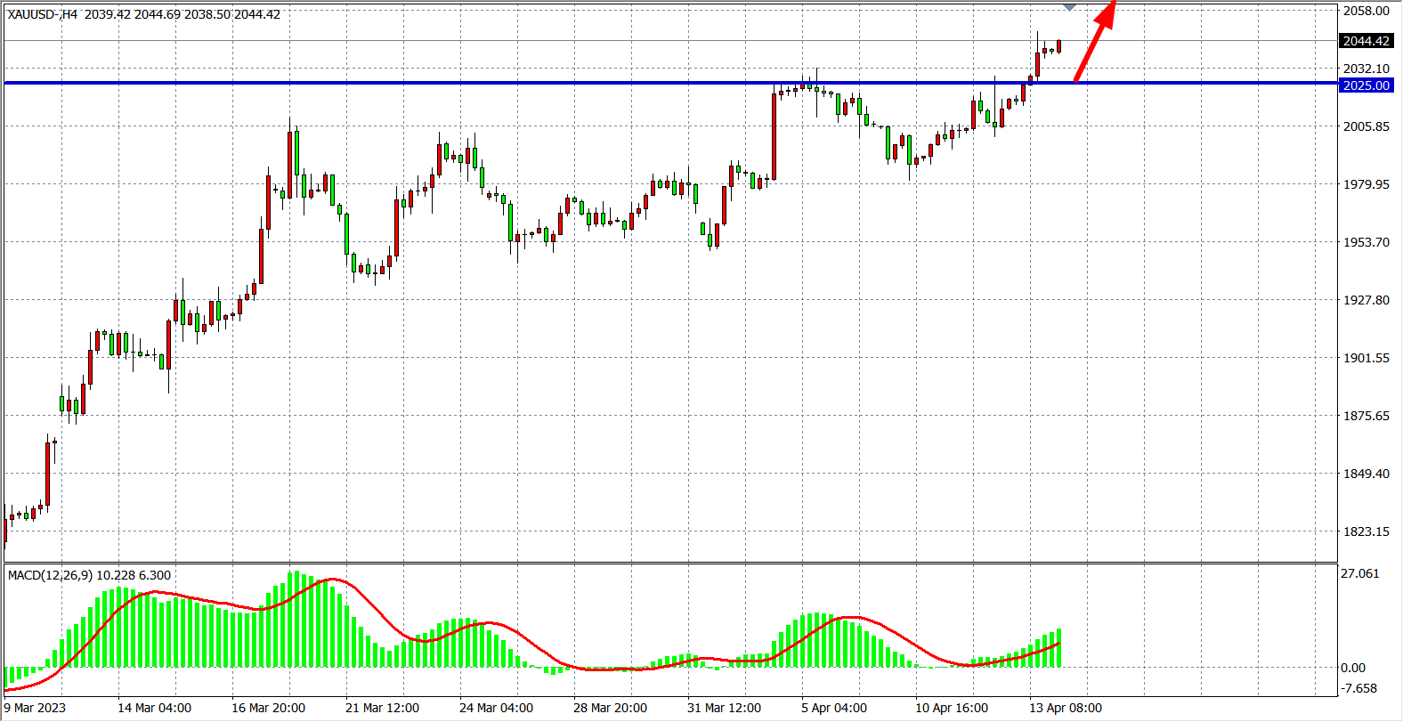 周四(4月13日)因受PPI降温的拖累,疲软的美国经济数据加剧了市场对美联储即将暂停加息的押注,现货黄金冲上2040美元关口,刷新逾1年新高,距离2020年创下的历史最高价还差约30美元,最终收涨1.25%。展望后市,美联储的宽松政策前景、全球“去美元化”、对冲不确定性等因素,将为黄金带来源源不断的买入需求。