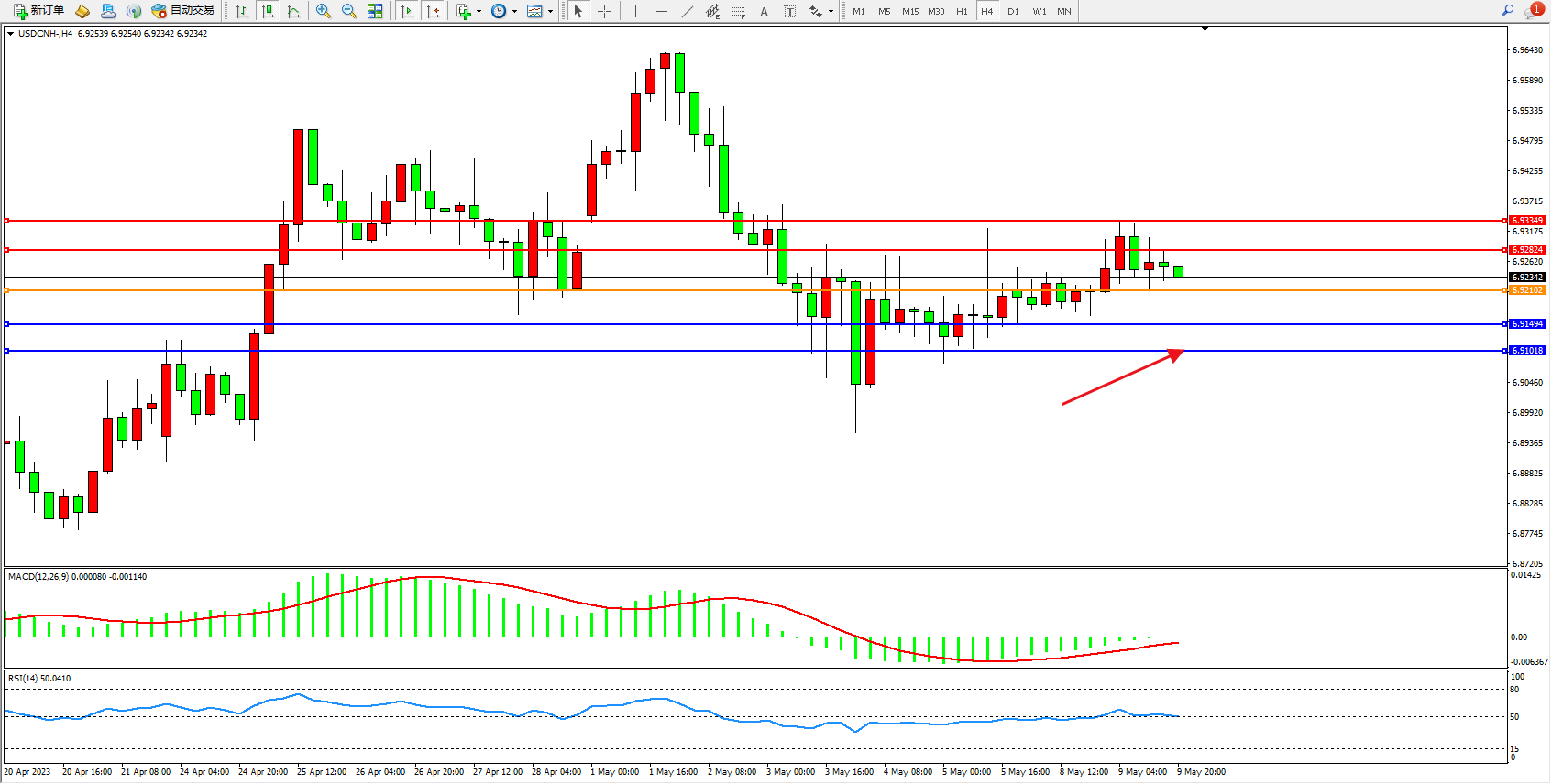 交易策略:6.92102上方看涨,目标6.92824 6.93349