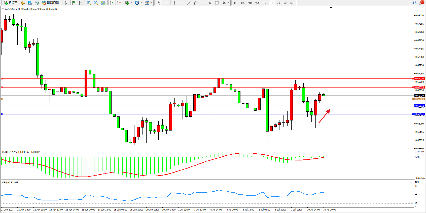 澳元兑美元维持0.66739附近震荡,矿业巨头在中国发布了逊预期的CPI数据后转跌,澳股高开低走,逼近7000点关卡 澳元对美元持续下行。