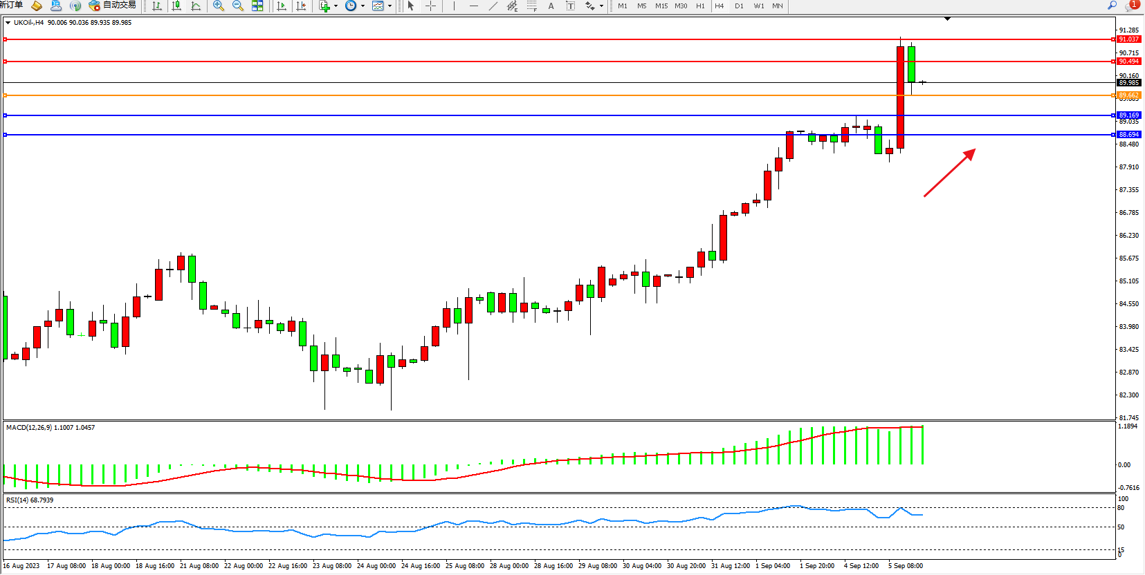 布油UKOil——4小时K线图显示:
