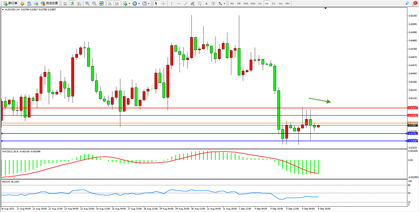 阻力位:0.63930 0.64024