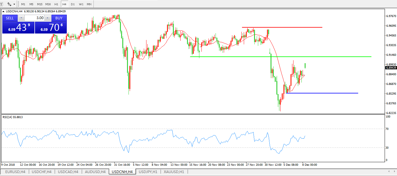 交易策略6.9100之下,看跌,目标价位为6.8545,然后为 6.8242
