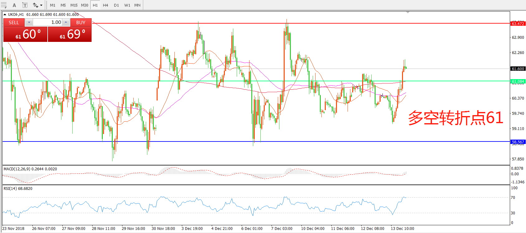 多空转折点:61.00