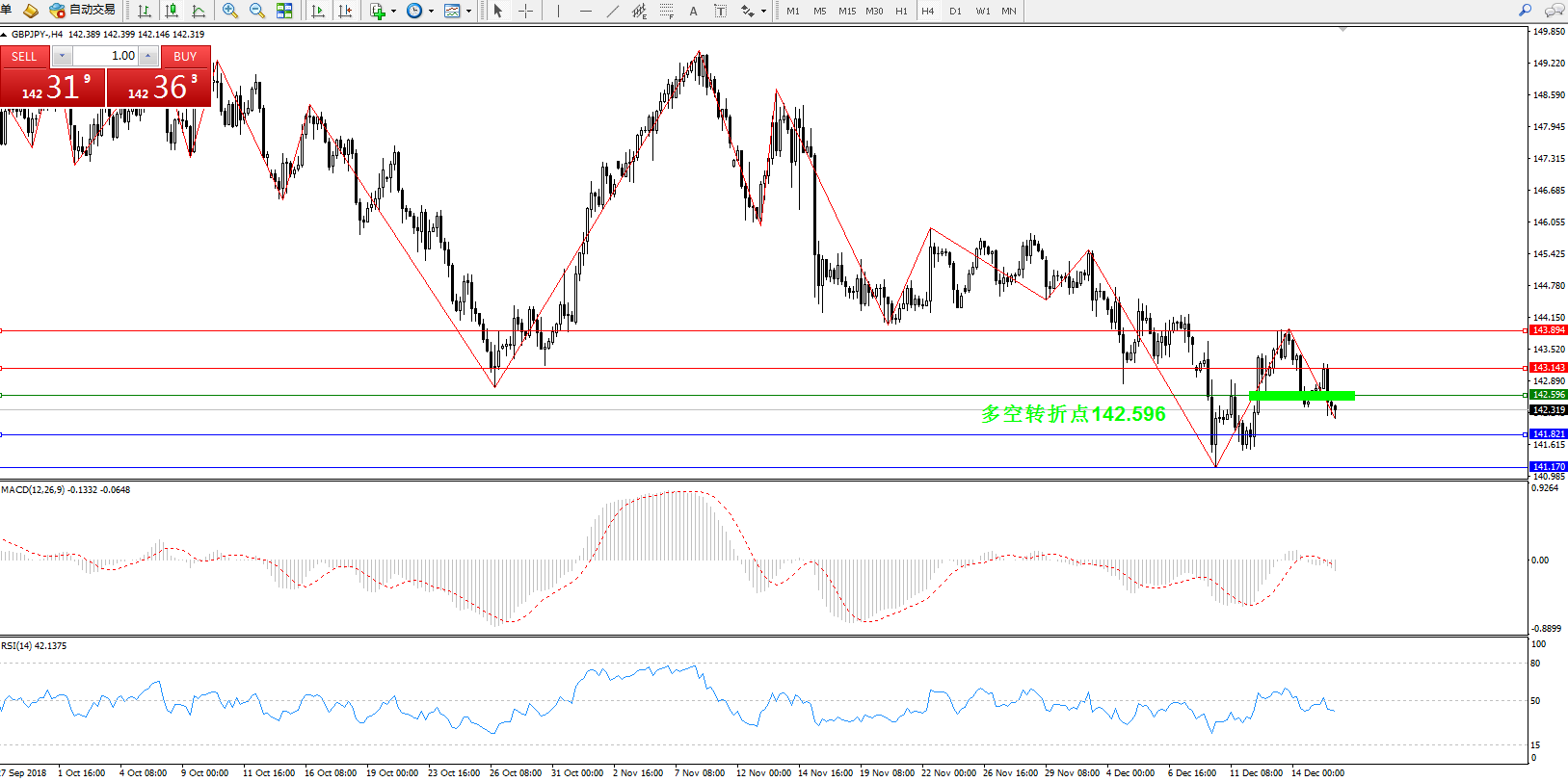 交易策略:142.596上方看涨,目标143.143143.894