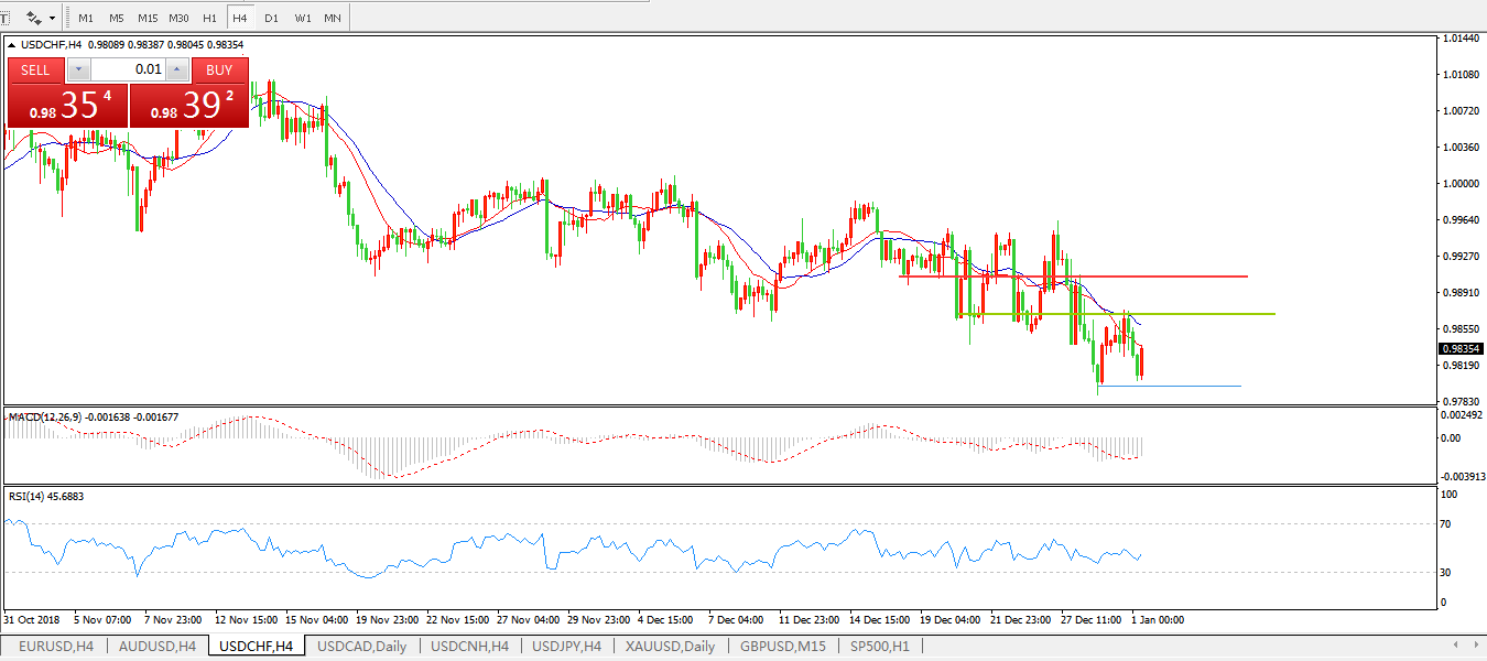 美元兑瑞郎USDCHF4小时图