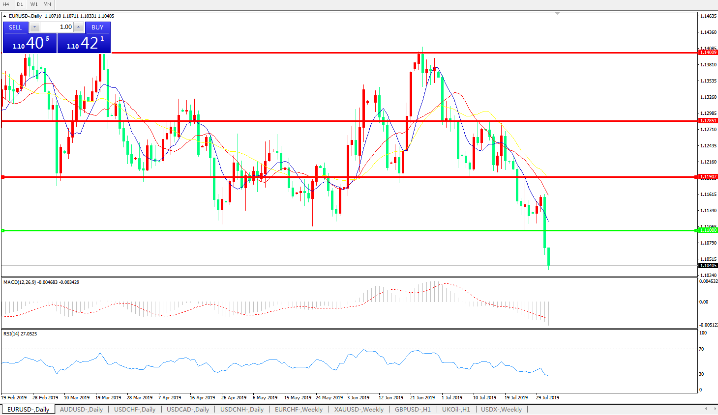 交易策略:1.1100下方看跌,目标1.1000、1.0000