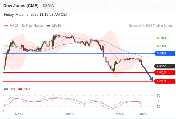 在 48260 之下,看跌,目标价位为 47610 ,然后为 47310 。