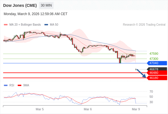 在 47040 之下,看跌,目标价位为 46480 ,然后为 46180 。