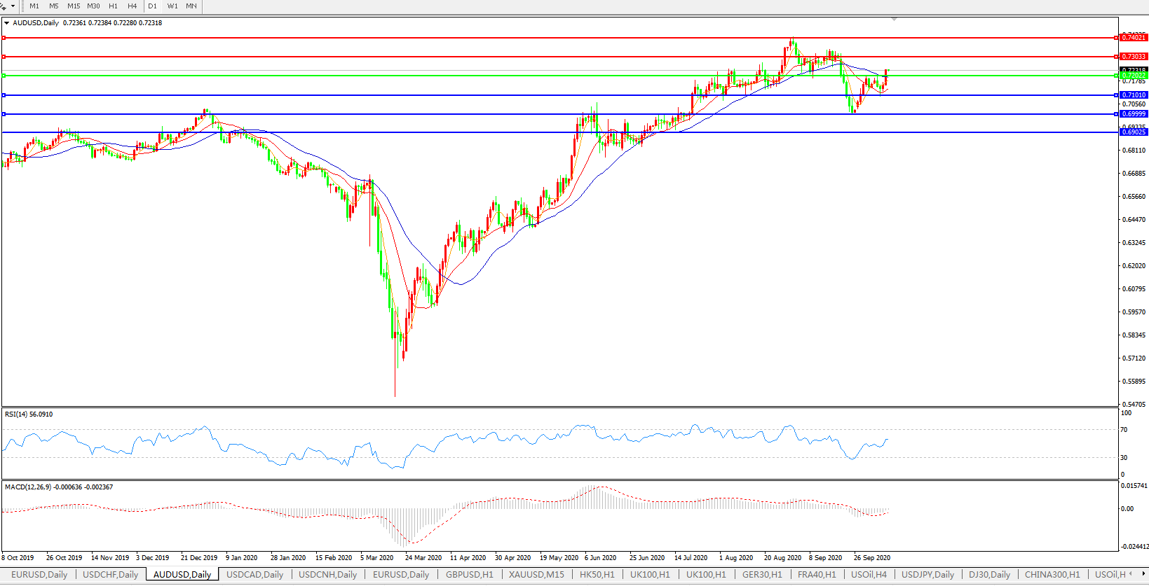 澳元兑美元AUDUSD 日线图: