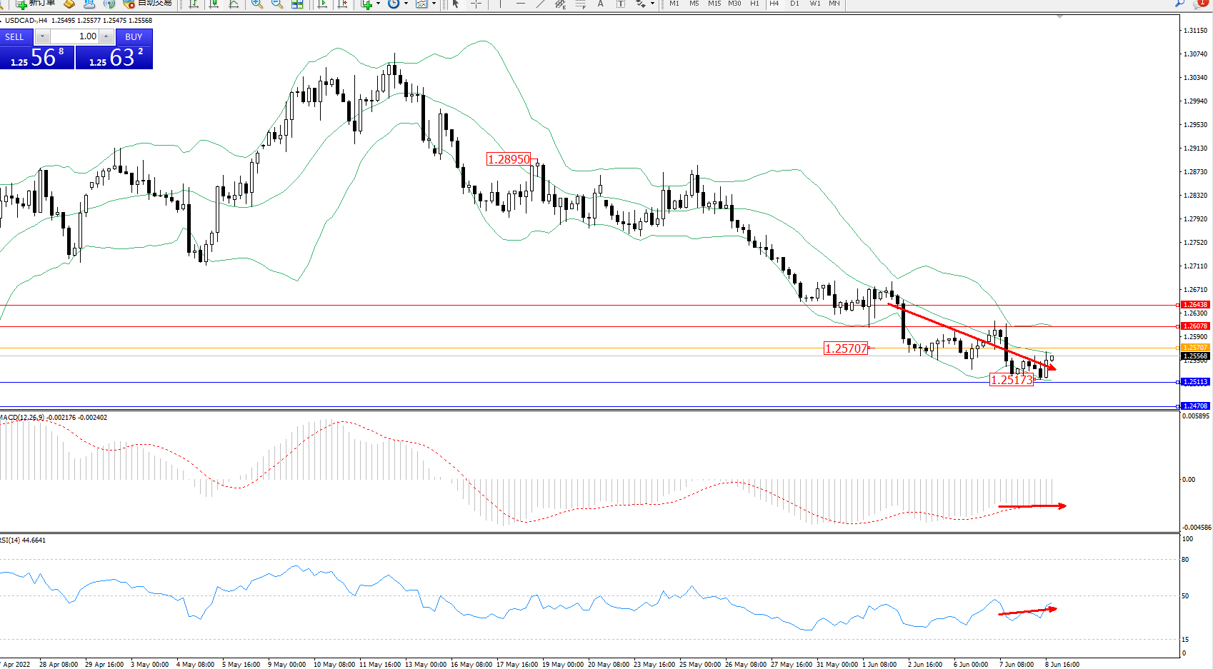 美元加元USDCAD——4小时K线图显示: