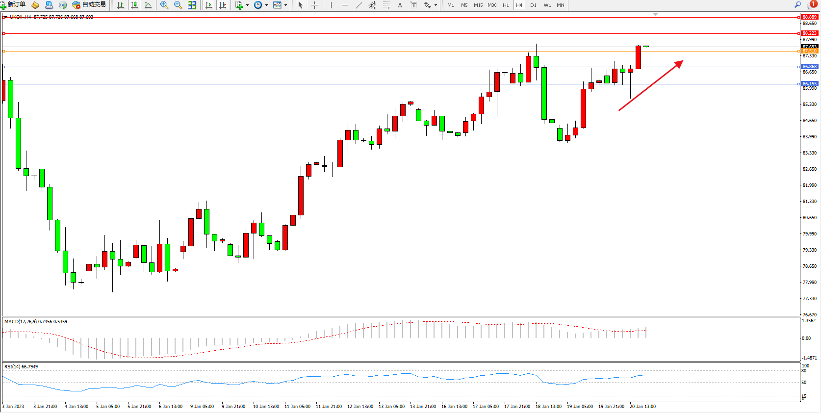 布油UKOil——4小时K线图显示: