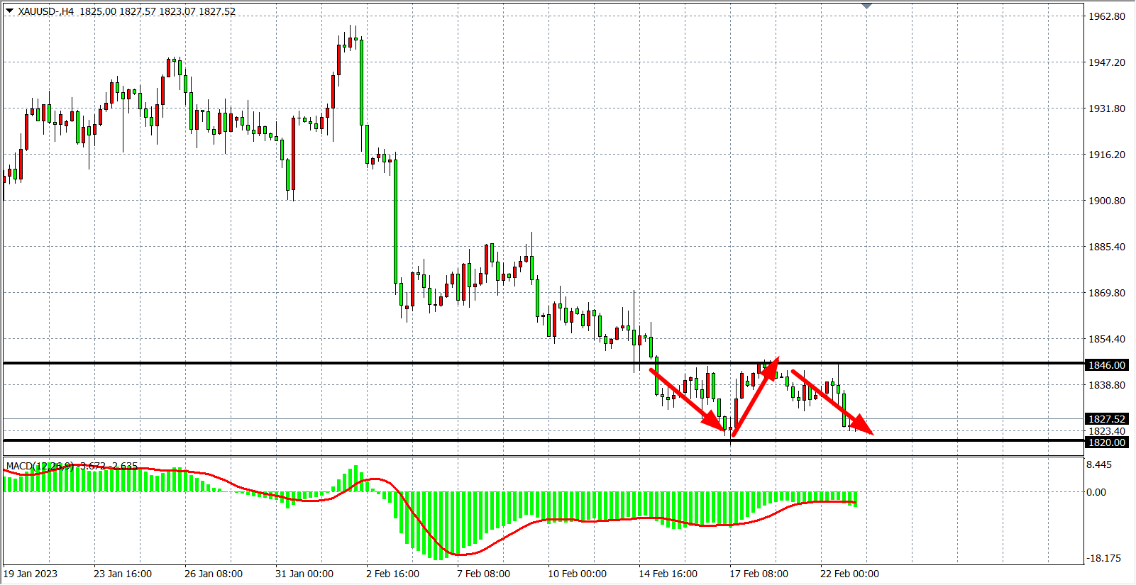 交易策略:在1820.00 之下看涨,目标1830.00         1847.00